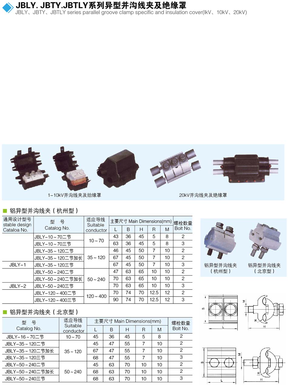 产品名称:JBLY.JBTY.JBTLY系列异型并沟线夹及绝缘罩