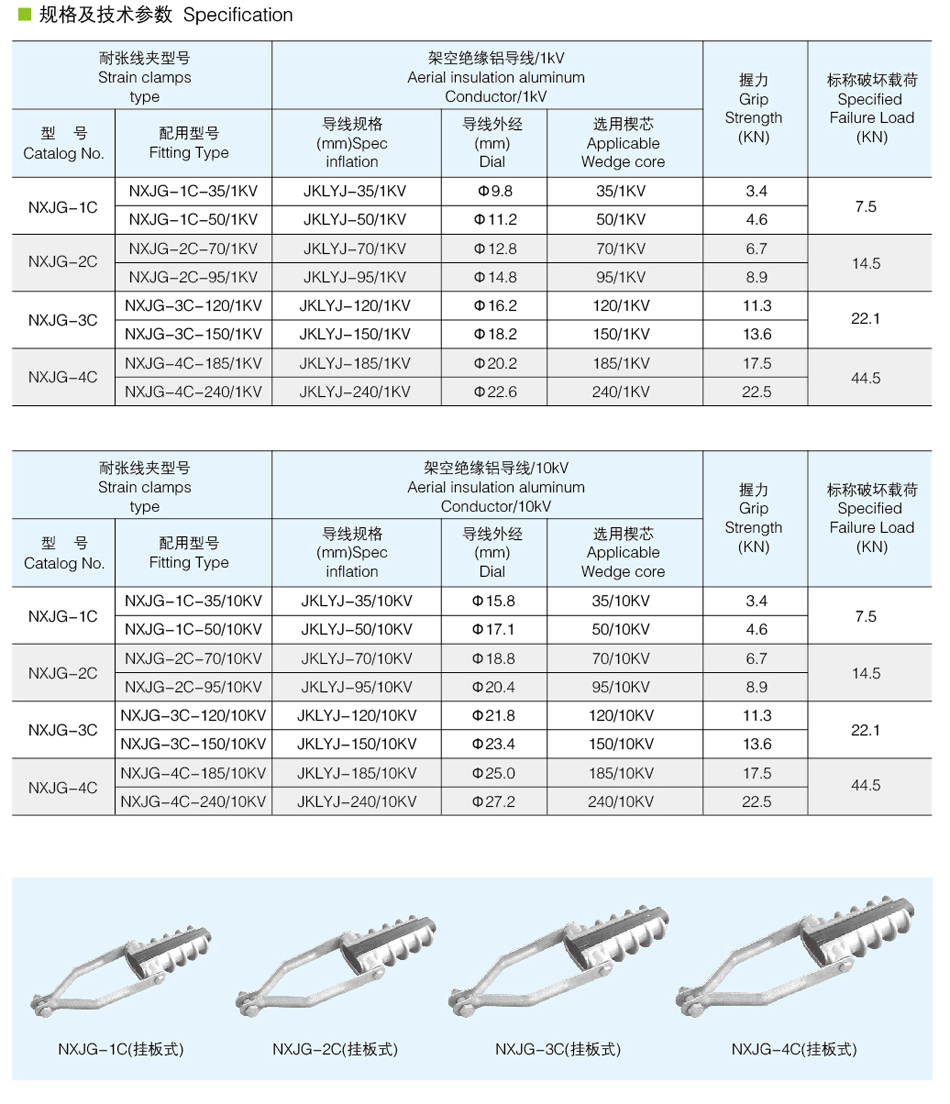 产品名称:NXJG-C系列楔型绝缘耐张线夹(铝绞线架空绝缘电缆JKLYJ)