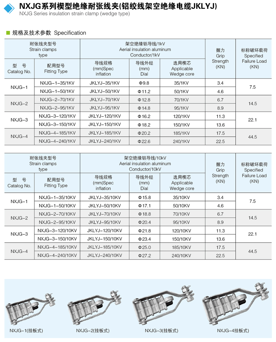 产品名称:NXJG系列楔型绝缘耐张线夹(铝绞线架空绝缘电缆JKLYJ)