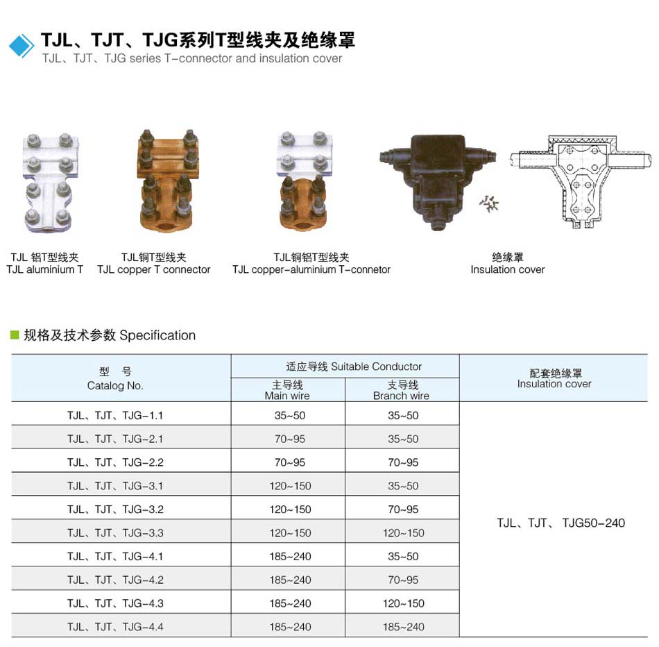产品名称:TJL、TJT、TJG系列T型线夹及绝缘罩