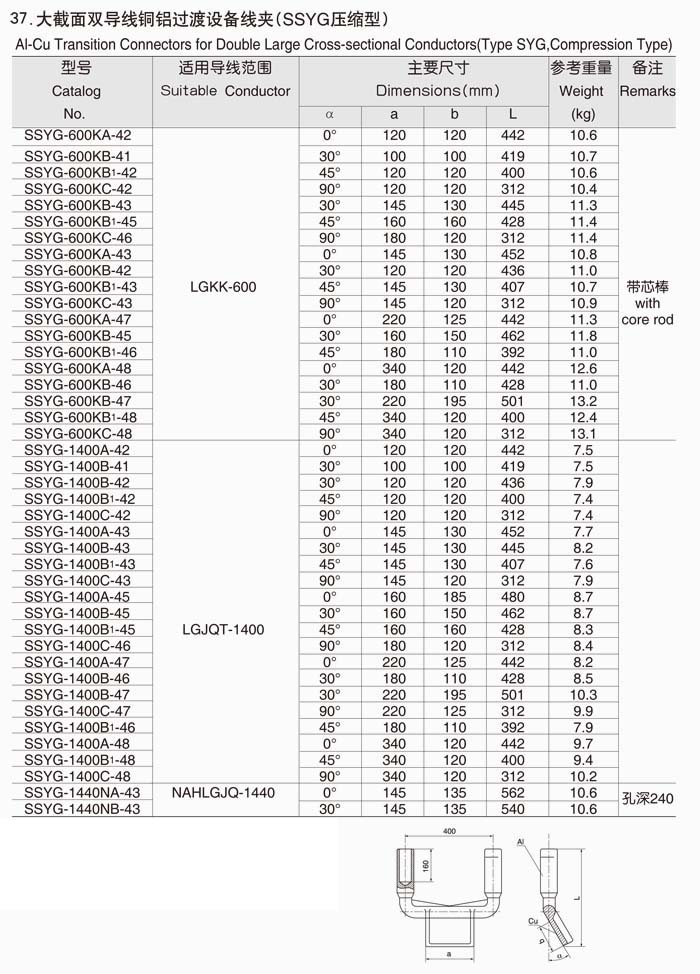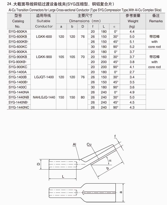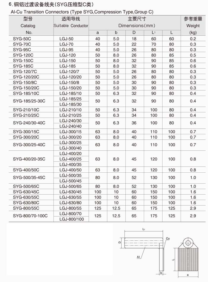 产品名称:压缩型铜铝过渡设备线夹